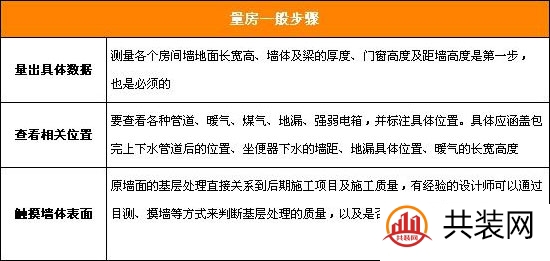 量房是裝修第一步,雖然一般都由設(shè)計(jì)師來量房,但是業(yè)主也要懂一些技巧,才能更好地進(jìn)行接下來的裝修工作。  1.須知量房的重要意義 許多業(yè)主對(duì)量房并不重視,統(tǒng)一量房可以讓自己更深入的了解到自己的房間布局,也方便了裝修公司以及設(shè)計(jì)師對(duì)房間的認(rèn)知,從而更好地完成設(shè)計(jì)。此外,量房需要精確到毫米級(jí),能夠確保裝修時(shí)線路以及管道精確鋪設(shè)。 2.量房的收費(fèi)情況 一般都是請(qǐng)?jiān)O(shè)計(jì)師來量房,一般一次100元左右。如果量好房,業(yè)主選擇這家裝修公司設(shè)計(jì)、施工,則這100元自動(dòng)轉(zhuǎn)化為定金;如果量好房就結(jié)束了,則這100元就是量房的費(fèi)用。 3.量房順序有講究 量房前大概巡視下每個(gè)房間,做到心里有數(shù)。然后從最靠近大門的空間開始進(jìn)行逐一測(cè)量。手中一定要做好記錄,確保每一個(gè)測(cè)量數(shù)據(jù)的對(duì)應(yīng)。 4.裝修量房一般流程 ① 準(zhǔn)備量房工具 量房時(shí)基本工具有卷尺(長(zhǎng)度5米以上)、紙筆,還有相機(jī)、繪圖板、激光測(cè)量?jī)x等。 ?、?繪制房間圖紙?jiān)诹糠壳坝浀脭y帶房屋戶型圖,如果沒有帶,可以現(xiàn)場(chǎng)畫出大概的平面結(jié)構(gòu)圖。巡視一遍所有的房間,了解基本的房型結(jié)構(gòu)。圖不需要太講求尺寸,只要能進(jìn)行數(shù)據(jù)標(biāo)記就行。 ?、?實(shí)施測(cè)量 首先,測(cè)量各個(gè)房間墻地面長(zhǎng)寬高、墻體及梁的厚度、門窗高度及距墻高度; 其次,查看各種管道、暖氣、煤氣、地漏、強(qiáng)弱電箱,并標(biāo)注具體位置;最后,查看原墻面的基層處理質(zhì)量,判斷是否需要重新處理。  ?、?拍照留存底檔 最好在量房的時(shí)候能夠拍照作留底,有利于后期設(shè)計(jì)的準(zhǔn)確。 ⑤ 多與設(shè)計(jì)師溝通 量房時(shí),應(yīng)多和設(shè)計(jì)師進(jìn)行溝通,表達(dá)自己對(duì)房屋的構(gòu)想和要求。 Tips: ?、俜壳耙攘私夥课菟诘男^(qū)物業(yè),對(duì)房屋裝修的具體規(guī)定,例如在水電改造方面的具體要求,房屋外立面可否拆改,陽臺(tái)窗能否封閉等等,以避免不必要的麻煩。 ?、?有特殊之處要用不同顏色的筆標(biāo)清楚。 ?、?在全部測(cè)量完后,再全面檢查一遍,以確保測(cè)量的準(zhǔn)確、精細(xì)。 ?、?用卷尺測(cè)量長(zhǎng)度的話,需要兩個(gè)人配合才行,否則很容易造成數(shù)據(jù)不準(zhǔn)確。 |
