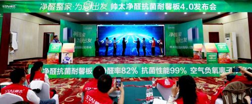 | 2023年5月4日,帥太整家定制“凈醛整家,為愛出發(fā)”凈醛抗菌耐馨板4.0發(fā)布會在中國·鄭州成功舉辦。會上,帥太整家定制聚焦現(xiàn)代家居生活環(huán)境,產(chǎn)品體系進(jìn)行了全方位升級,從單產(chǎn)品環(huán)保到整家環(huán)保的健康維度劇變,重磅推出帥太凈醛抗菌耐馨板,滿足消費(fèi)者的環(huán)保健康的家居夢想。