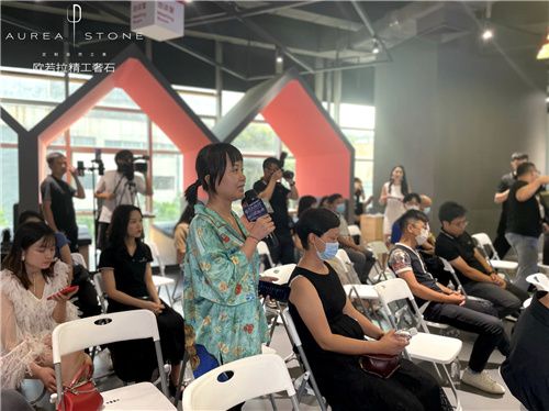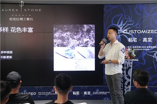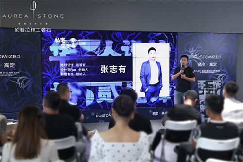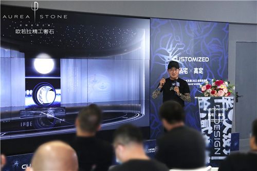 隨后,歐若拉精工奢石總裁丁國興先生為現(xiàn)場嘉賓帶來關(guān)于歐若拉的品牌故事。從0.618黃金分格比例,到歐若拉品牌的誕生,作為精工奢石全球第一、市場唯一的品牌,歐若拉擁有包含大理石、奢石、水泥、金屬、木紋等品種多樣及花色豐富的產(chǎn)品體系,物理性能卓越,可厚可薄,可彎可透……