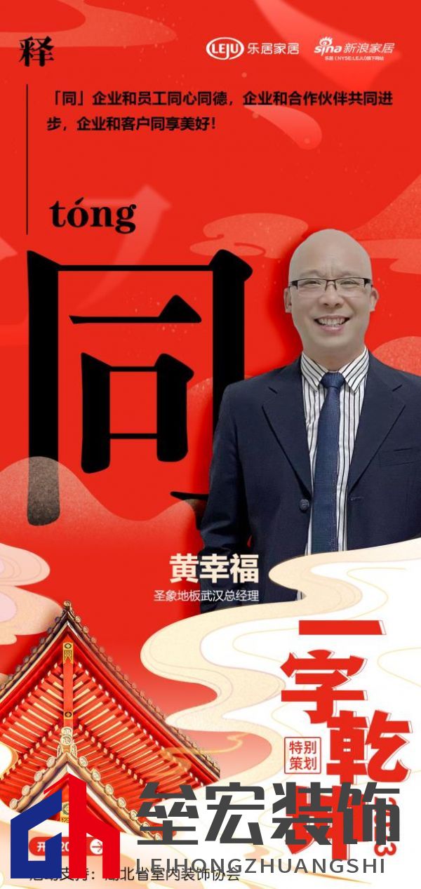 在新浪家居“2023一字乾坤”活動中,圣象地板武漢總經(jīng)理黃幸福:「同」企業(yè)和員工同心同德,企業(yè)和合作伙伴共同進步,企業(yè)和客戶同享美好! “以漢字賦能湖北家居企業(yè),彰顯厚積薄發(fā)之力”,以單字抒寫了各家企業(yè)及媒體的新年愿景與發(fā)展信條,領略楚風漢韻下湖北家居人砥礪向前,揚帆未來的決心與動力,情暖兔歲,新啟華章。 |
