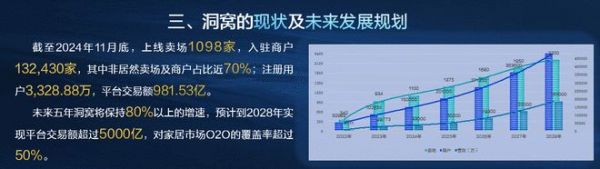 截至2024年11月底,洞窩平臺(tái)已上線賣場(chǎng)1098家,入駐商戶達(dá)132,430家,其中非居然賣場(chǎng)及商戶占比近70%。亮眼的數(shù)據(jù),充分展示了洞窩平臺(tái)在家居產(chǎn)業(yè)的強(qiáng)大影響力和市場(chǎng)認(rèn)可度。未來,洞窩平臺(tái)也將以數(shù)智升級(jí)為核心驅(qū)動(dòng)力,保持高速增長(zhǎng),提升家居市場(chǎng)O2O的覆蓋率。